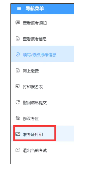 在左側(cè)導(dǎo)航欄選擇“準(zhǔn)考證打印”。
