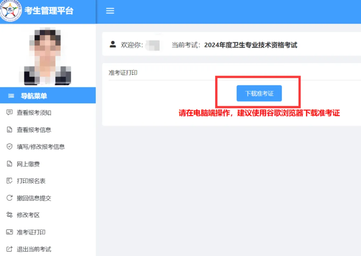 點擊“下載準(zhǔn)考證”,并妥善保存。(請在電腦端操作,建議使用谷歌瀏覽器)