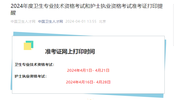 從中國衛(wèi)生人才網(wǎng)獲悉,2024年衛(wèi)生專業(yè)技術(shù)資格考試準(zhǔn)考證打印提醒已公布,4月1日-4月21日進(jìn)行打印準(zhǔn)考證,具體詳情如下: