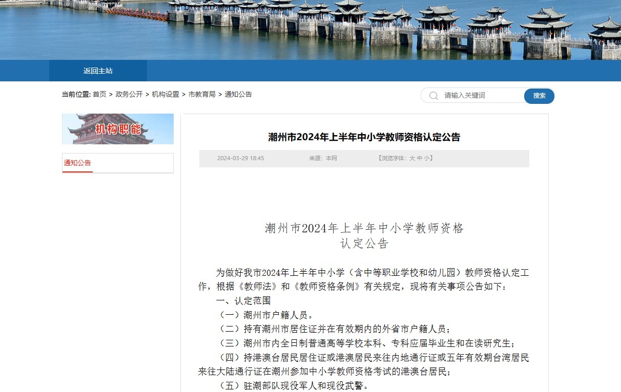為做好我市2024年上半年中小學(xué)(含中等職業(yè)學(xué)校和幼兒園)教師資格認(rèn)定工作,根據(jù)《教師法》和《教師資格條例》有關(guān)規(guī)定,現(xiàn)將有關(guān)事項(xiàng)公告如下: