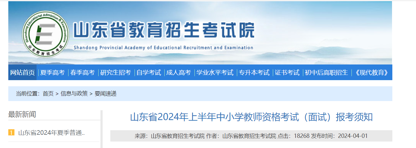 考生考前請務(wù)必登錄山東省教育招生考試院網(wǎng)站查閱《致2024年上半年中小學(xué)教師資格考試(面試)考生的一封信》,按照相關(guān)要求做好準(zhǔn)備工作。
