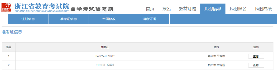 點(diǎn)擊“我的信息-準(zhǔn)考證信息”菜單,進(jìn)入準(zhǔn)考證信息頁(yè)面進(jìn)行查看。