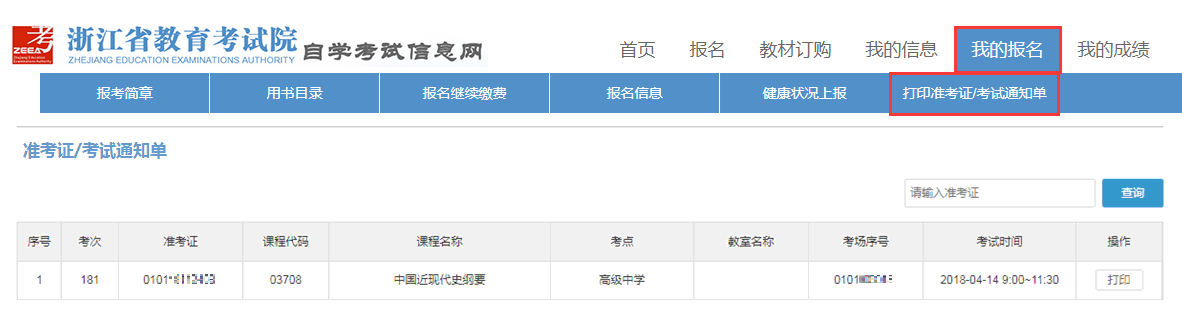 2.打印準(zhǔn)考證(考試通知單)