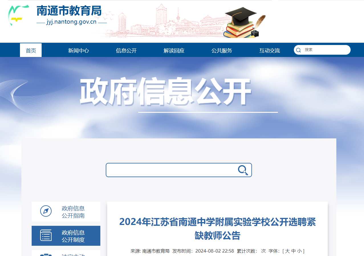 2024年江蘇省南通中學(xué)附屬實驗學(xué)校公開選聘緊缺教師公告已發(fā)布,報名時間:2024年08月10日-08月11日(上午9:00-11:30,下午13:30—17:00)?,F(xiàn)將招聘公告原文發(fā)布如下: