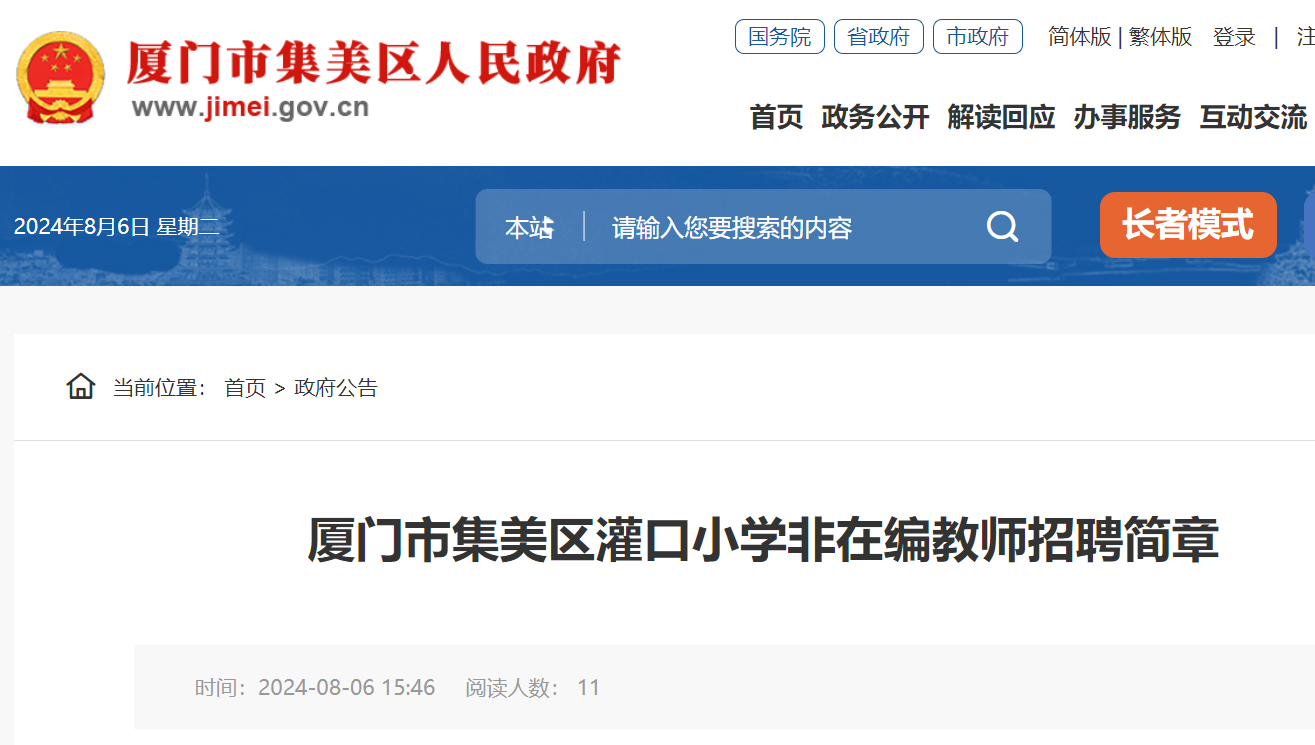 2024福建廈門市集美區(qū)灌口小學(xué)非在編教師招聘簡章已發(fā)布,報(bào)名時(shí)間:即日起至2024年8月13日。現(xiàn)將招聘公告原文發(fā)布如下: