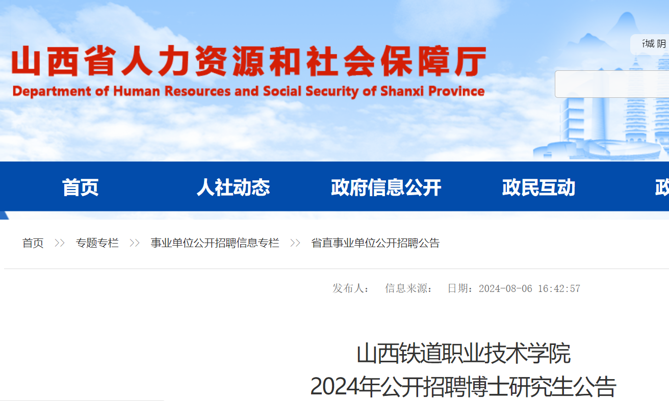 根據(jù)工作需要,按照《事業(yè)單位人事管理條例》和國家及我省事業(yè)單位公開招聘有關政策規(guī)定,山西鐵道職業(yè)技術學院2024年面向社會公開招聘博士研究生10名?,F(xiàn)將有關事項公告如下。