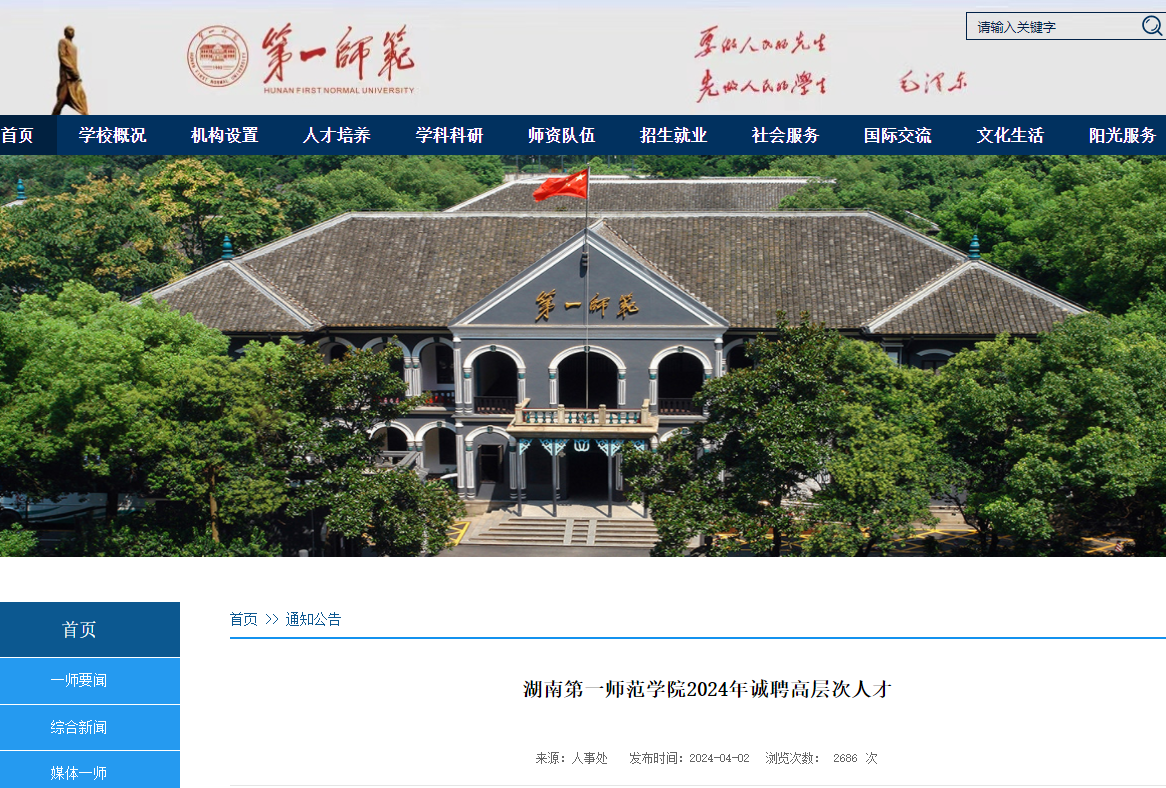 2024湖南第一師范學(xué)院誠聘高層次人才公告已發(fā)布,采取網(wǎng)絡(luò)報(bào)名的方式,隨到隨招,招滿即止。每人限報(bào)一個(gè)崗位,多報(bào)取消應(yīng)聘資格?,F(xiàn)將招聘公告原文發(fā)布如下: