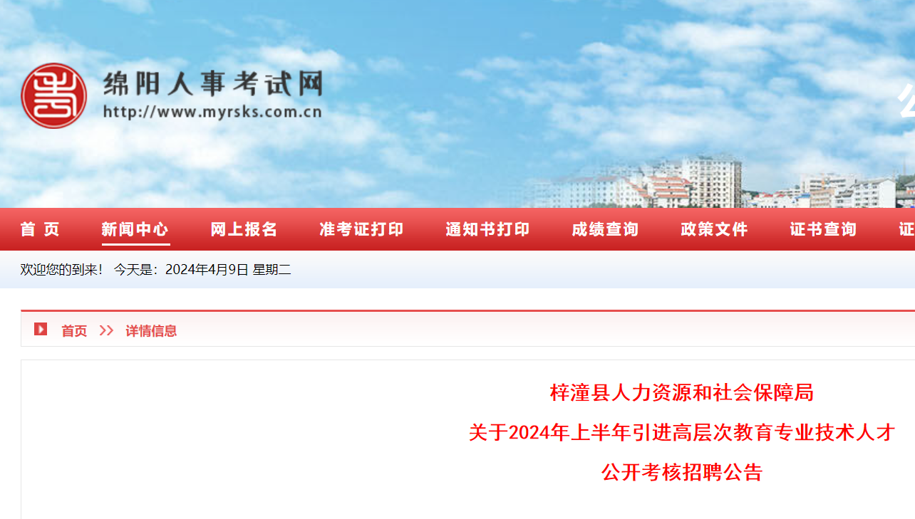 2024年上半年四川綿陽梓潼縣引進(jìn)高層次教育專業(yè)技術(shù)人才公開考核招聘公告已發(fā)布,網(wǎng)上報名時間:2024年4月25日前?,F(xiàn)場報名時間:2024年4月25日、26日。現(xiàn)將招聘公告原文發(fā)布如下: