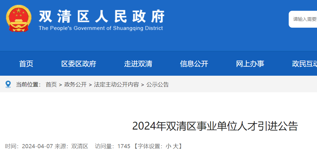 為深入貫徹落實習近平總書記關于人才工作的系列重要講話精神,全面實施人才強區(qū)戰(zhàn)略,加大人才引進力度,為我區(qū)經(jīng)濟社會發(fā)展提供人才支撐,經(jīng)研究同意,開展2024年雙清區(qū)事業(yè)單位人才引進工作,現(xiàn)將有關事項公告如下: