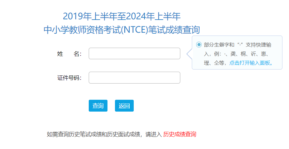 點(diǎn)擊進(jìn)入>>>2024上半年湖南中學(xué)教師資格證成績(jī)查詢系統(tǒng)