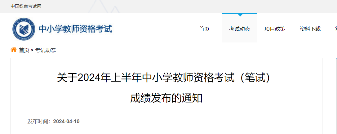從中國教育考試網(wǎng)發(fā)布的《關(guān)于2024年上半年中小學(xué)教師資格考試筆試成績發(fā)布的通知》得知,2024上半年上海教師資格考試成績查詢時間、方式及入口已公布,4月12日10時起查詢筆試成績,具體詳情如下: