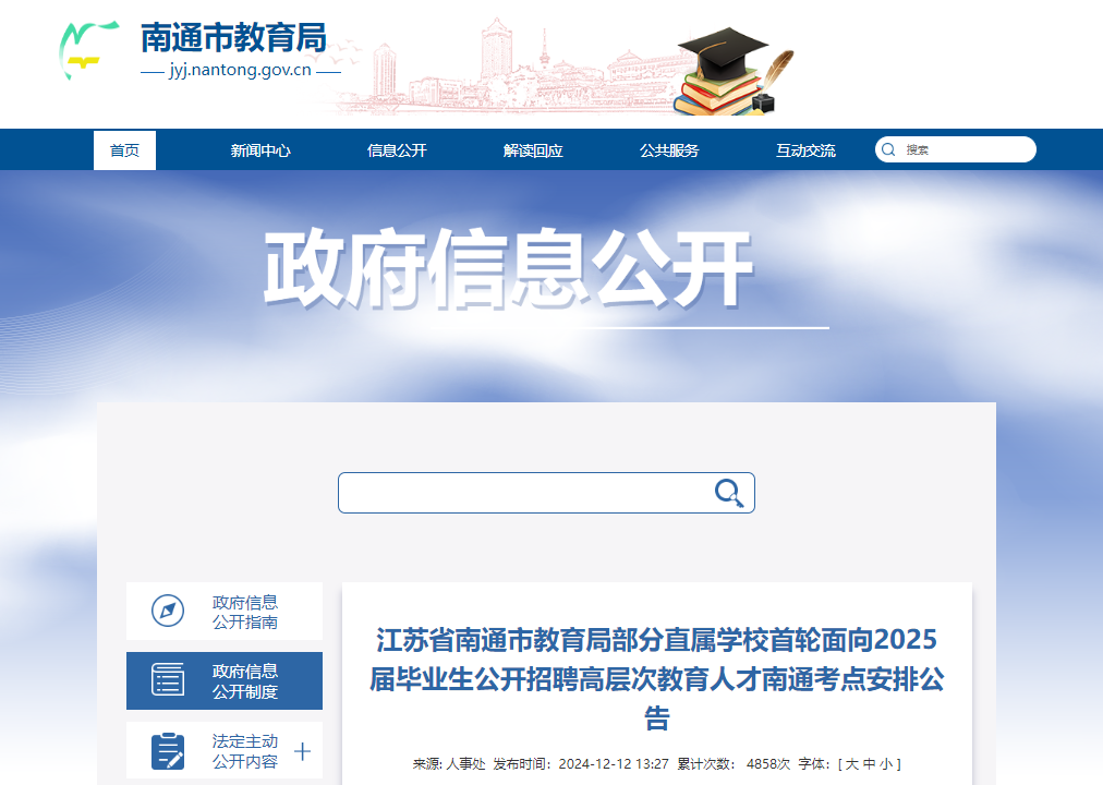 江蘇南通市教育局部分直屬學(xué)校首輪面向2025屆畢業(yè)生招聘高層次教育人才南通考點(diǎn)安排公告已發(fā)布,報(bào)名時(shí)間:2024年12月17日9:00—2024年12月20日16:00。現(xiàn)將招聘公告原文發(fā)布如下:
