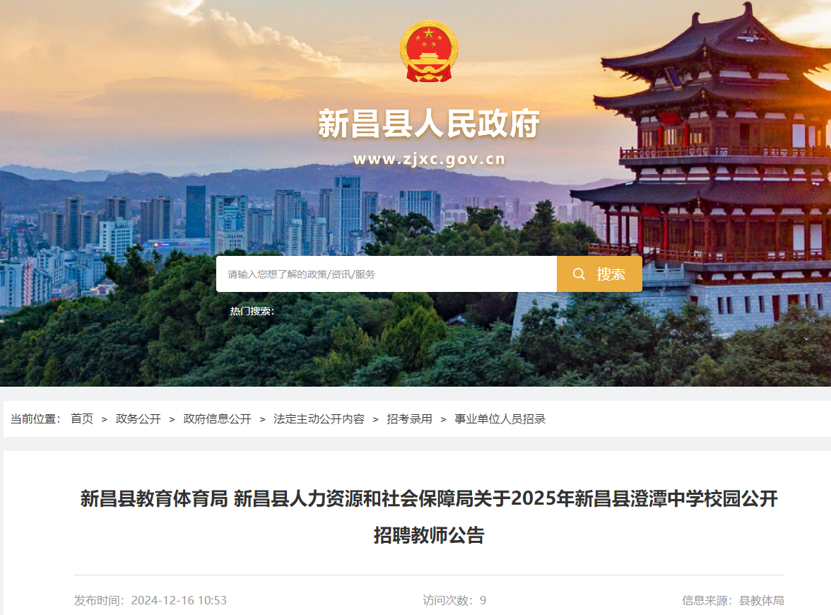 為滿足學(xué)校補(bǔ)充優(yōu)質(zhì)教師的需要,根據(jù)《事業(yè)單位公開招聘人員暫行規(guī)定》《浙江省事業(yè)單位公開招聘人員暫行辦法》《紹興市事業(yè)單位公開招聘工作實(shí)施細(xì)則(試行)》和《新昌縣事業(yè)單位公開招聘工作實(shí)施辦法(試行)》等有關(guān)規(guī)定,新昌縣教體局經(jīng)商縣人力社保局同意,由新昌縣澄潭中學(xué)組織實(shí)施2025年校園公開招聘工作?,F(xiàn)將有關(guān)事項(xiàng)公告如下: