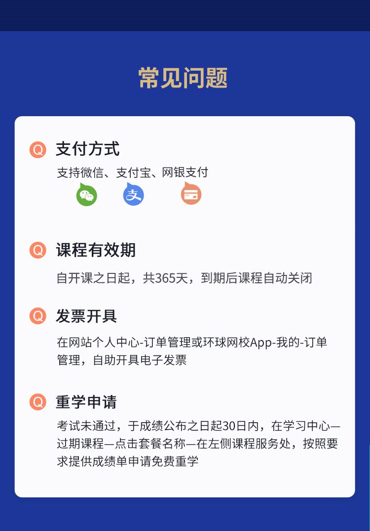 持續(xù)更新優(yōu)化:隨著考試大綱的變化和行業(yè)發(fā)展的需求,環(huán)球網(wǎng)校會及時對課程內(nèi)容進行更新和優(yōu)化,確保學(xué)員學(xué)到的是新、實用的知識,保證教學(xué)內(nèi)容的時效性和準(zhǔn)確性.