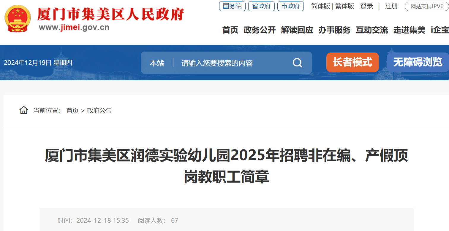 2025年福建廈門市集美區(qū)潤德實驗幼兒園招聘非在編、產(chǎn)假頂崗教職工簡章已發(fā)布,報名時間:即日起至2025年1月20日?,F(xiàn)將招聘公告原文發(fā)布如下: