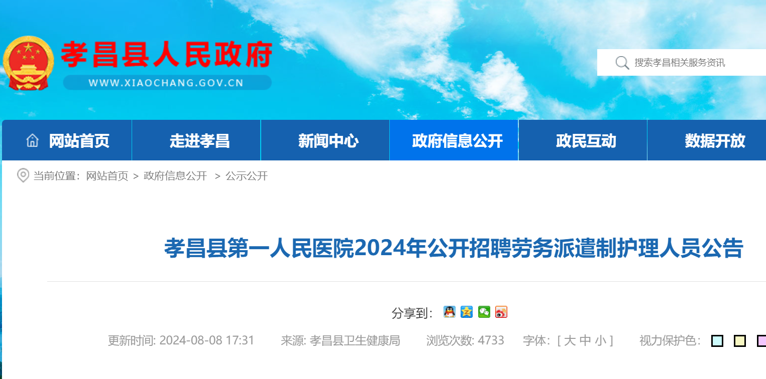 2024年湖北孝感孝昌縣第一人民醫(yī)院公開招聘勞務(wù)派遣制護(hù)理人員公告已發(fā)布,網(wǎng)上報名時間:2024年8月13日8:00至8月16日17:30。現(xiàn)將招聘公告原文發(fā)布如下:
