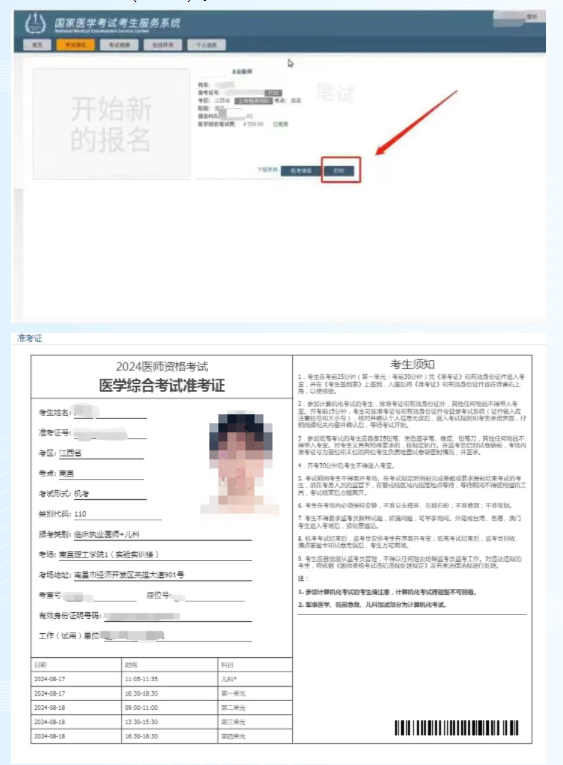 2024年江西中醫(yī)助理醫(yī)師醫(yī)學(xué)綜合考試準考證打印入口已開通,2024年醫(yī)師資格考試醫(yī)學(xué)綜合考試江西考區(qū)考生準考證打印功能已于2024年8月8日開通,請考生登錄國家醫(yī)學(xué)考試網(wǎng)(www.nmec.org.cn),進入“國家醫(yī)學(xué)考試考生服務(wù)系統(tǒng)——個人界面”點擊準考證號后的“打印”,進行準考證打?。ㄈ缦聢D)。