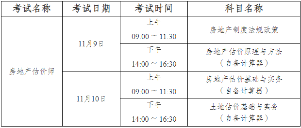 房地產(chǎn)估價師職業(yè)資格考試設置4個科目,分別為《房地產(chǎn)制度法規(guī)政策》、《房地產(chǎn)估價原理與方法》、《房地產(chǎn)估價基礎與實務》、《土地估價基礎與實務》,分4個半天進行,每個考試科目的考試時間為2.5小時。
