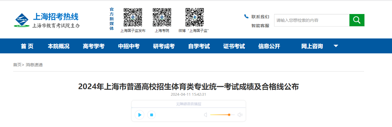 2024年上海市普通高校招生體育類專業(yè)統(tǒng)一考試成績及合格線將于4月11日(星期四)公布。具體安排如下: