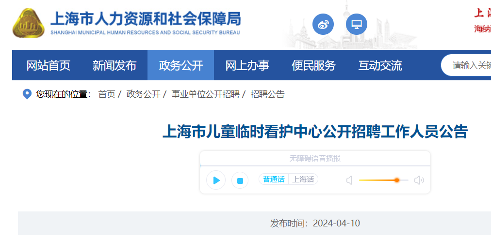 小編根據(jù)上海市人力資源和社會保障局發(fā)布“上海市兒童臨時(shí)看護(hù)中心公開招聘工作人員公告”得知,2024上海市兒童臨時(shí)看護(hù)中心招聘6人,報(bào)名時(shí)間即日起至2024年4月30日。