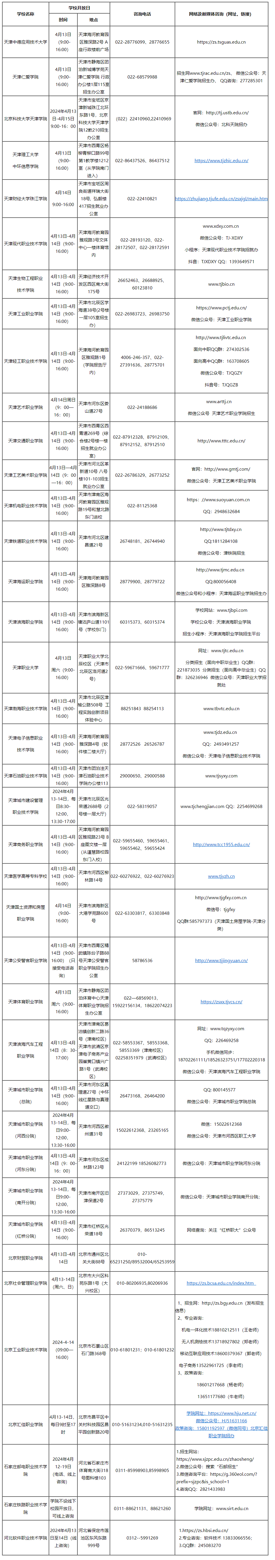 從天津招考資訊網(wǎng)獲悉,2024年天津高職分類考試志愿填報(bào)期間招生院校咨詢、宣傳活動(dòng)安排表已公布,4月13日起咨詢,具體詳情如下: