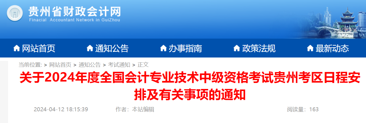 小編根據貴州省財政會計網發(fā)布"關于2024年度全國會計專業(yè)技術中級資格考試貴州考區(qū)日程安排及有關事項的通知"得知,2024年貴州中級會計職稱報名時間為2024年6月12日至7月2日,考試時間為9月7日至9日。