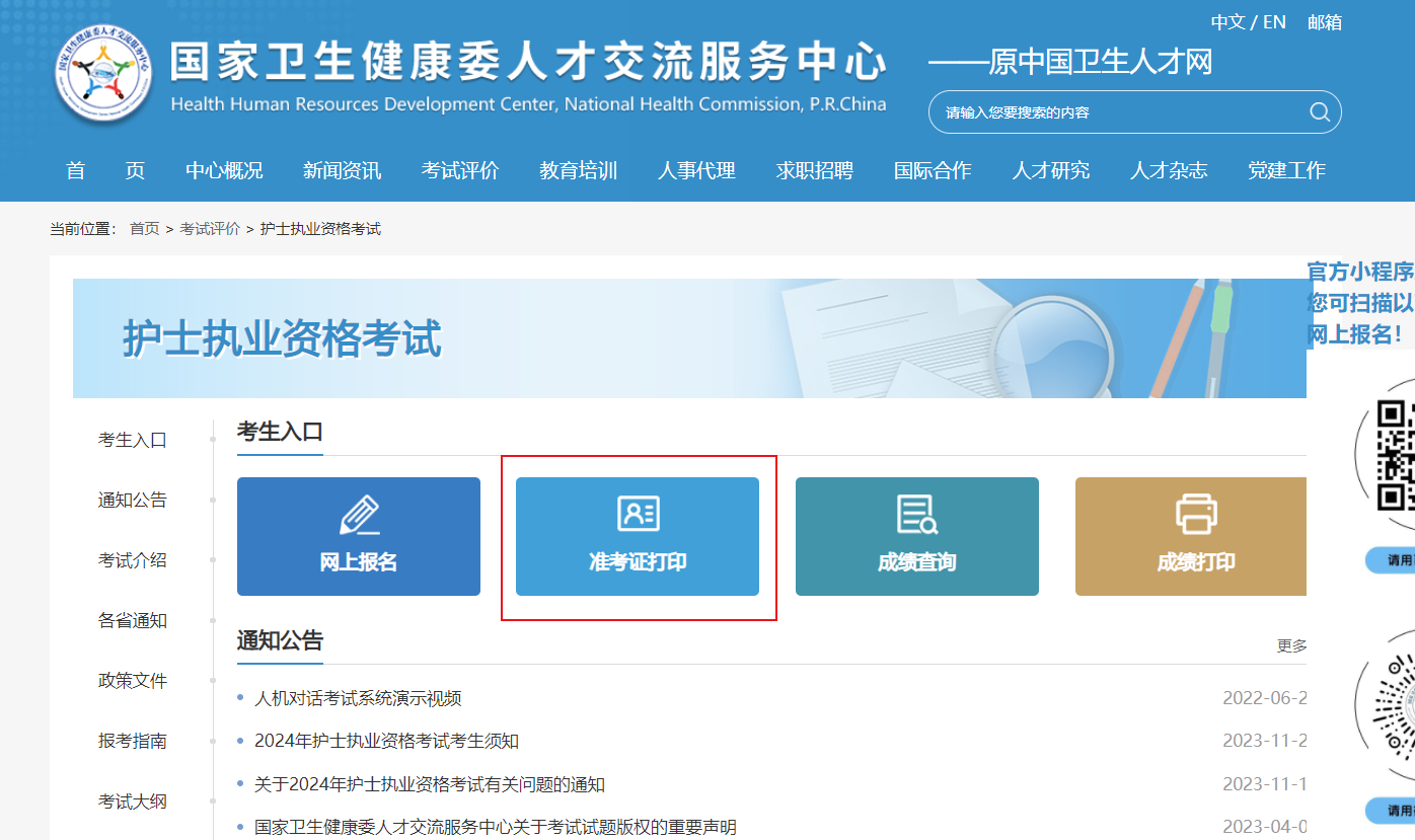 點(diǎn)擊進(jìn)入>>>2024年重慶護(hù)士資格證準(zhǔn)考證打印網(wǎng)站