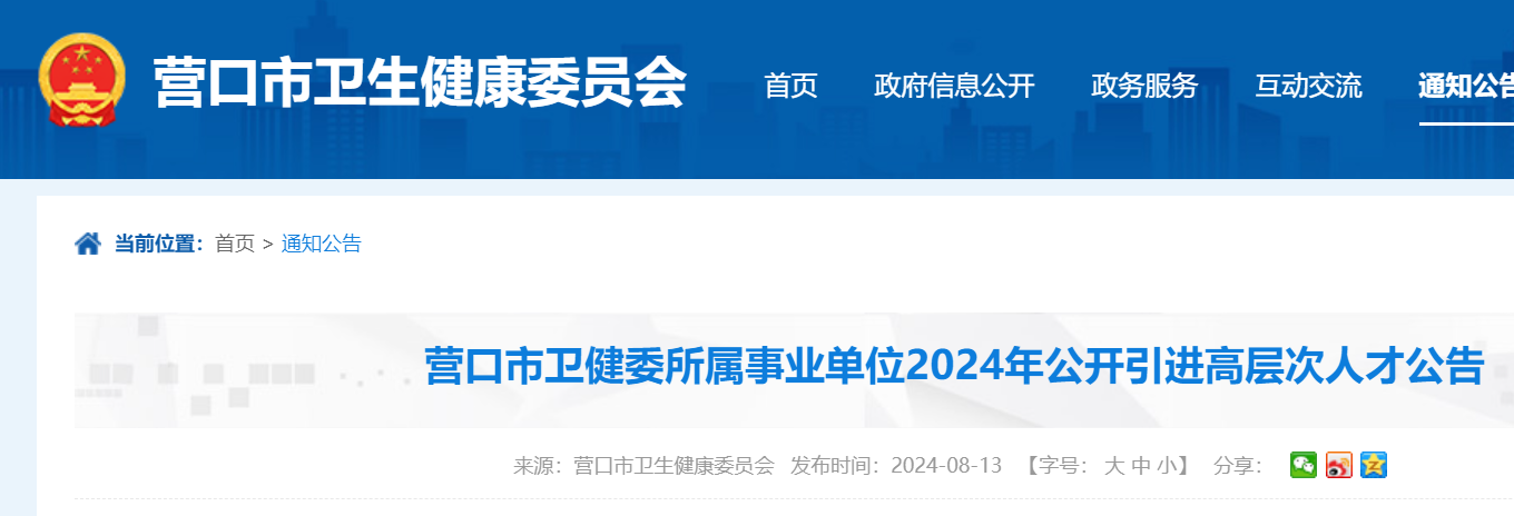 2024年遼寧營(yíng)口市衛(wèi)健委所屬事業(yè)單位公開(kāi)引進(jìn)高層次人才公告已發(fā)布,報(bào)名時(shí)間:2024年8月16日上午9:00-10:00。現(xiàn)將招聘公告原文發(fā)布如下: