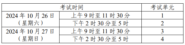 1.湖南常德2024年10月自考考試時間安排在2024年10月26、27日,上午考試時間為9:00—11:30,下午考試時間為14:30—17:00。