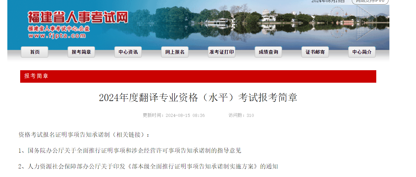 從福建省人事考試網(wǎng)獲悉,2024年福建翻譯專業(yè)資格水平考試報考簡章已公布,8月26日起報考,具體詳情如下: