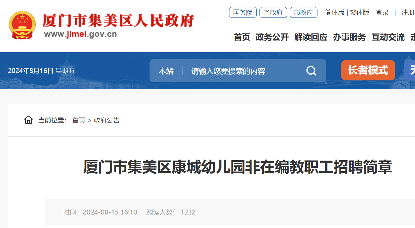 2024福建廈門市集美區(qū)康城幼兒園非在編教職工招聘簡(jiǎn)章已發(fā)布,報(bào)名時(shí)間:即日起至2024年8月19日?,F(xiàn)將招聘公告原文發(fā)布如下: