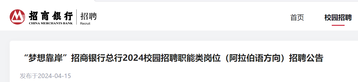 招商銀行2024校園招聘總行職能類崗位(阿拉伯語方向)招聘火熱進行中,邀您同行,夢想靠岸!