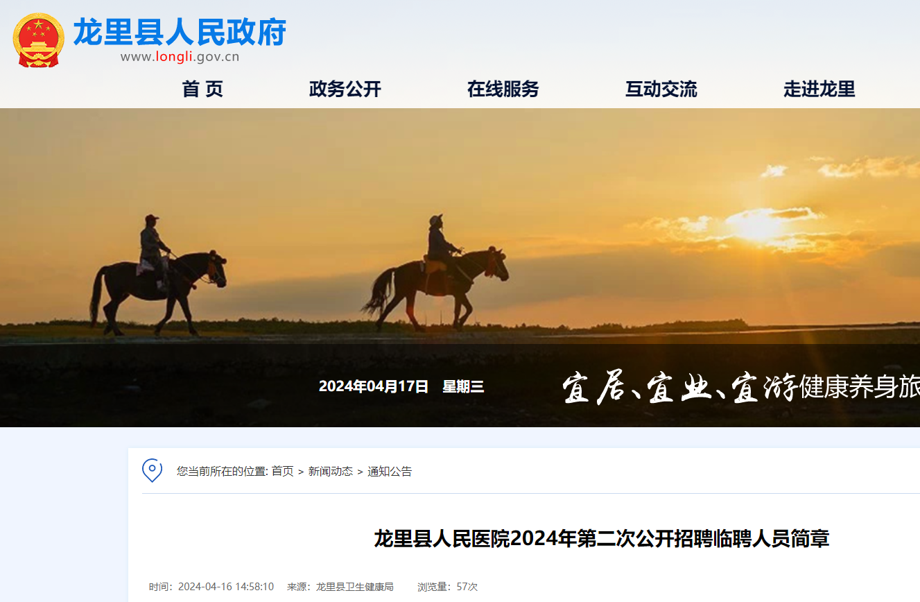 2024貴州黔南州龍里縣人民醫(yī)院第二次公開招聘臨聘人員簡章已發(fā)布,報名時間:2024年4月22日-4月23日上午08:00-12:00,下午14:00-17:00?,F(xiàn)將招聘公告原文發(fā)布如下: