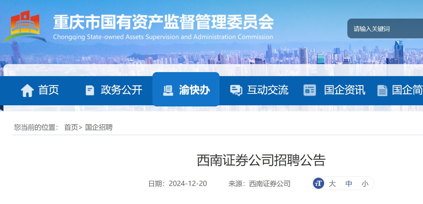 2024年重慶西南證券股份有限公司招聘公告已發(fā)布,應(yīng)聘者最多可投遞一個(gè)崗位。現(xiàn)將招聘公告原文發(fā)布如下:
