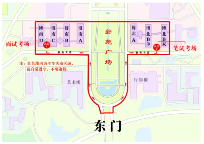 6.參加筆試的考生按準考證中規(guī)定的考試時間,攜帶本人《準考證》和《身份證》,提前1小時到達安徽大學磬苑校區(qū)東門(環(huán)翠路)入口排隊核驗身份進入考點,提前40分鐘到達博學北樓B樓入口處排隊接受考試違規(guī)物品檢查。安檢后依次進入指定考場,并在考場視頻監(jiān)控下再次接受考試安全檢查。開考15分鐘后,遲到考生不得進入考場參加考試。