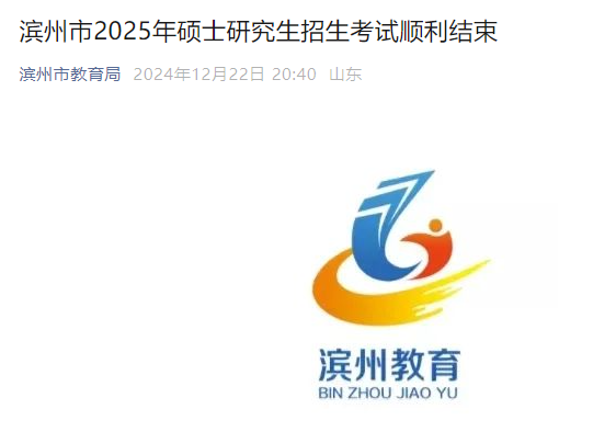 從濱州市教育局了解到,山東濱州2025年碩士研究生招生考試順利結(jié)束,具體如下: