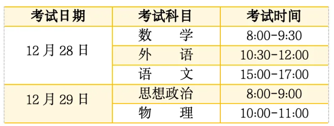內(nèi)蒙古錫林2024年秋季學(xué)期普通高中學(xué)業(yè)水平合格性考試時(shí)間安排在12月28日-12月29日,2024年秋季學(xué)期全區(qū)普通高中學(xué)業(yè)水平合格性考試開(kāi)考科目為語(yǔ)文、數(shù)學(xué)、外語(yǔ)、物理、思想政治5個(gè)科目。具體考試時(shí)間及科目安排如下: