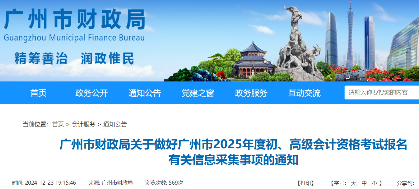 小編根據(jù)廣州市財(cái)政局發(fā)布“廣州市財(cái)政局關(guān)于做好廣州市2025年度初、高級(jí)會(huì)計(jì)資格考試報(bào)名有關(guān)信息采集事項(xiàng)的通知”得知,2025年1月23日中午12:00前完成信息采集審核,以免影響考試報(bào)名。