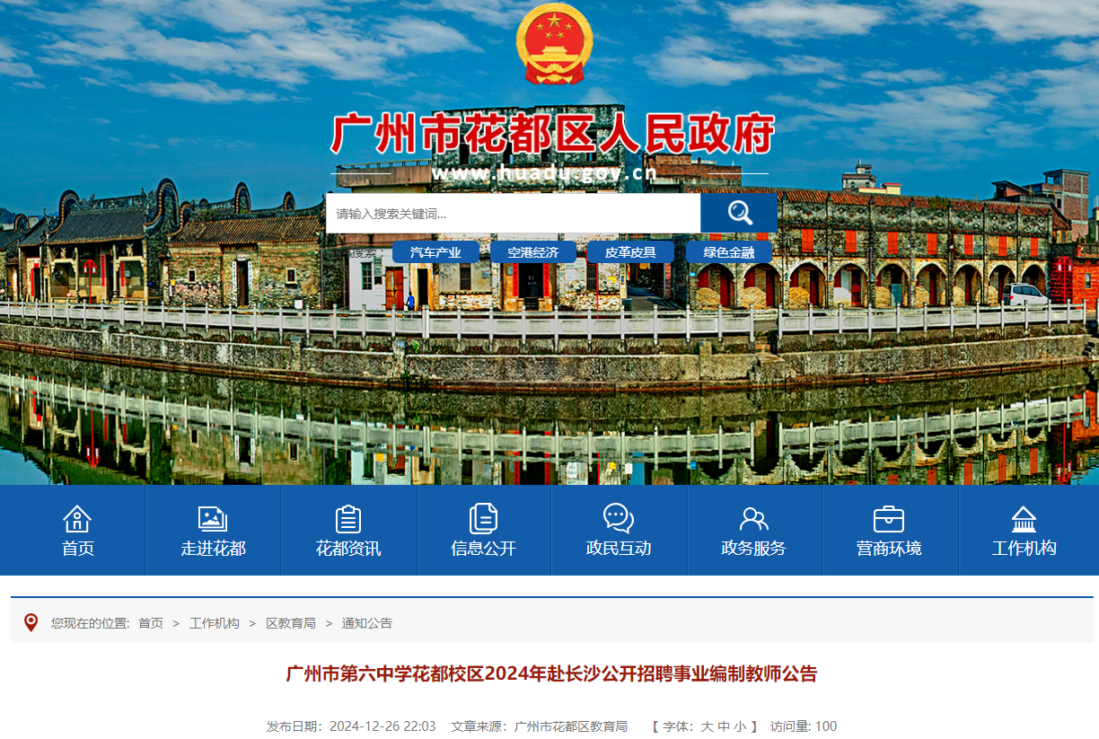 根據(jù)事業(yè)單位公開招聘有關(guān)規(guī)定,按照公開、平等、競爭、擇優(yōu)的原則,廣州市第六中學(xué)花都校區(qū)定于2024年12月在長沙設(shè)考點(diǎn)公開招聘6名編制教師。具體事宜公告如下: