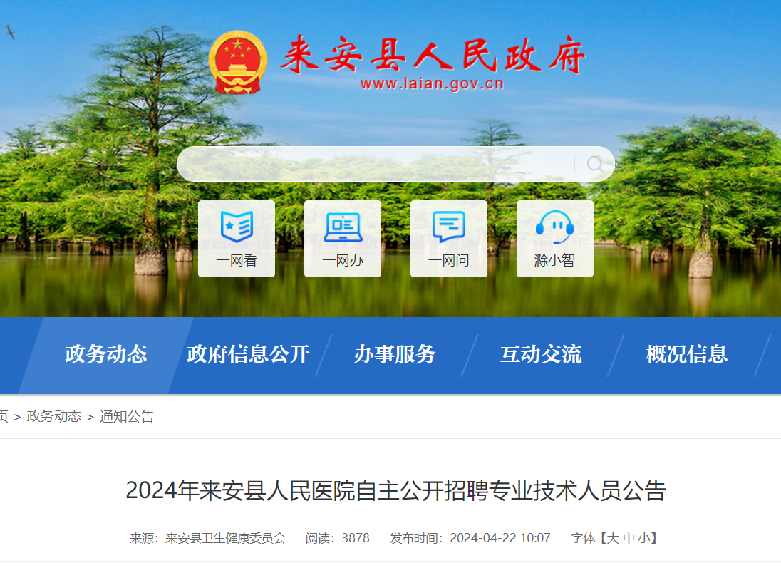 2024年來安縣人民醫(yī)院自主公開招聘專業(yè)技術(shù)人員工作有關資格復審、體檢、考察等后續(xù)信息,請考生及時登錄來安縣人民政府網(wǎng)站查詢、查閱。