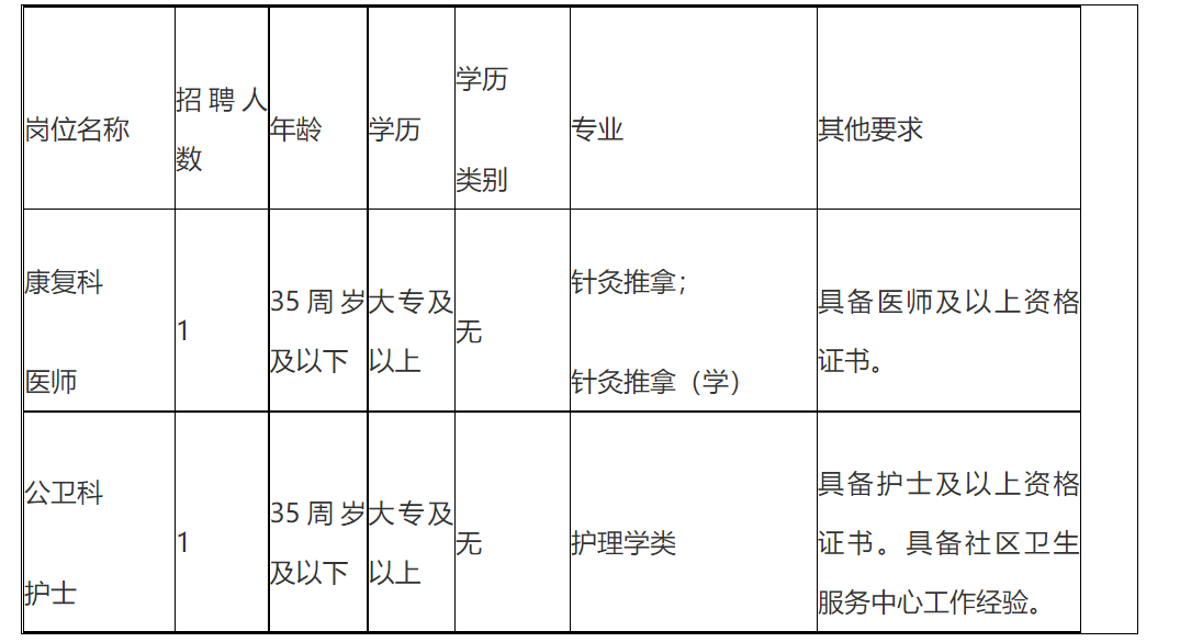 4、具有各醫(yī)院、社區(qū)衛(wèi)生服務(wù)中心、社區(qū)站、衛(wèi)生院工作經(jīng)驗(yàn)者優(yōu)先。