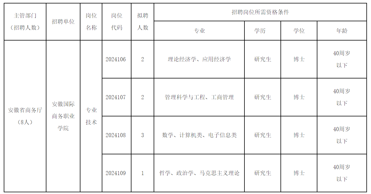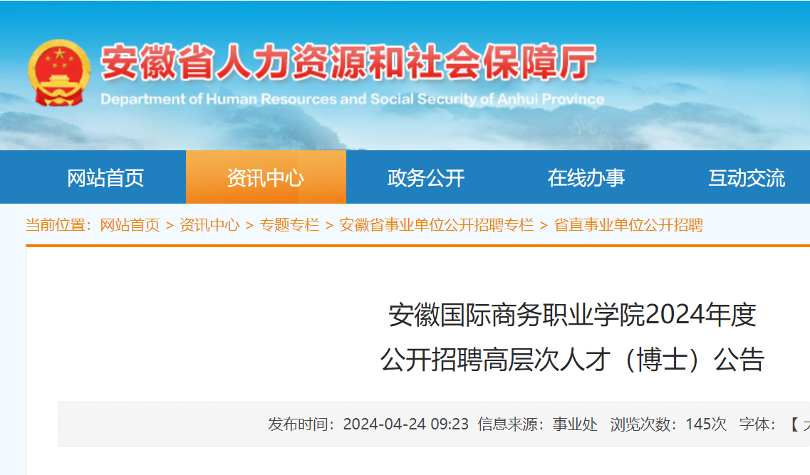 (一)安徽省人力資源和社會(huì)保障廳、安徽省商務(wù)廳、安徽國(guó)際商務(wù)職業(yè)學(xué)院等網(wǎng)站發(fā)布招聘公告。報(bào)名時(shí)間自招聘公告發(fā)布之日起有效,各崗位招滿為止。