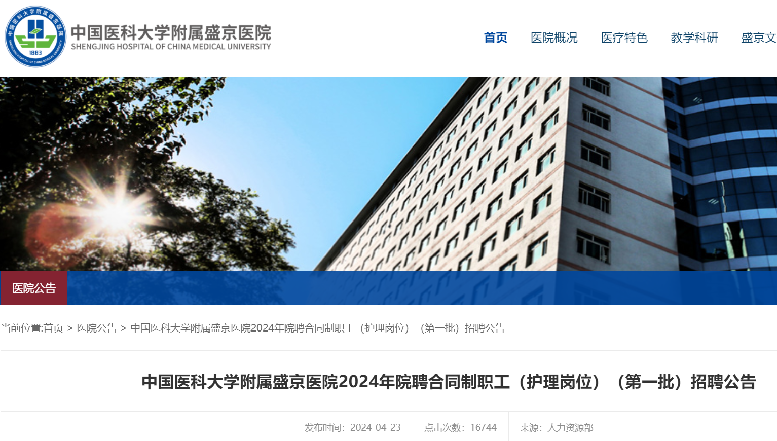 2024年中國醫(yī)科大學(xué)附屬盛京醫(yī)院第一批招聘院聘合同制護士150人,報名時間:即日起至2024年4月26日17點整止?,F(xiàn)將招聘公告原文發(fā)布如下: