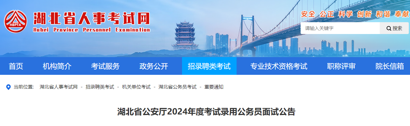 根據(jù)《湖北省2024年度省市縣鄉(xiāng)考試錄用公務員公告》要求,經(jīng)筆試、資格復審,現(xiàn)將湖北省公安廳考試錄用公務員面試有關事項公告如下: