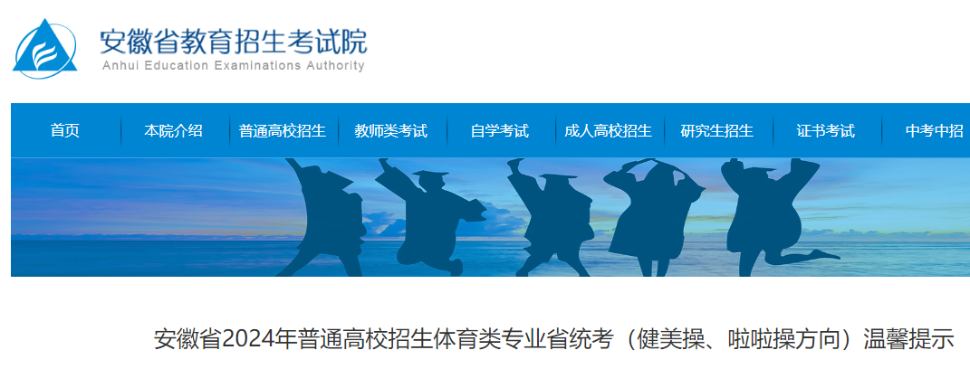 安徽省2024年普通高校招生體育類專業(yè)省統(tǒng)考(健美操、啦啦操方向)報名考生約400人。即日起,考生可登錄報名網(wǎng)站(網(wǎng)址:gkbm.ahzsks.cn)打印準(zhǔn)考證。如在打印過程中遇到困難,請咨詢所在的學(xué)?;虍?dāng)?shù)卣猩荚嚈C(jī)構(gòu)?,F(xiàn)將考試有關(guān)事項(xiàng)再次提示如下: