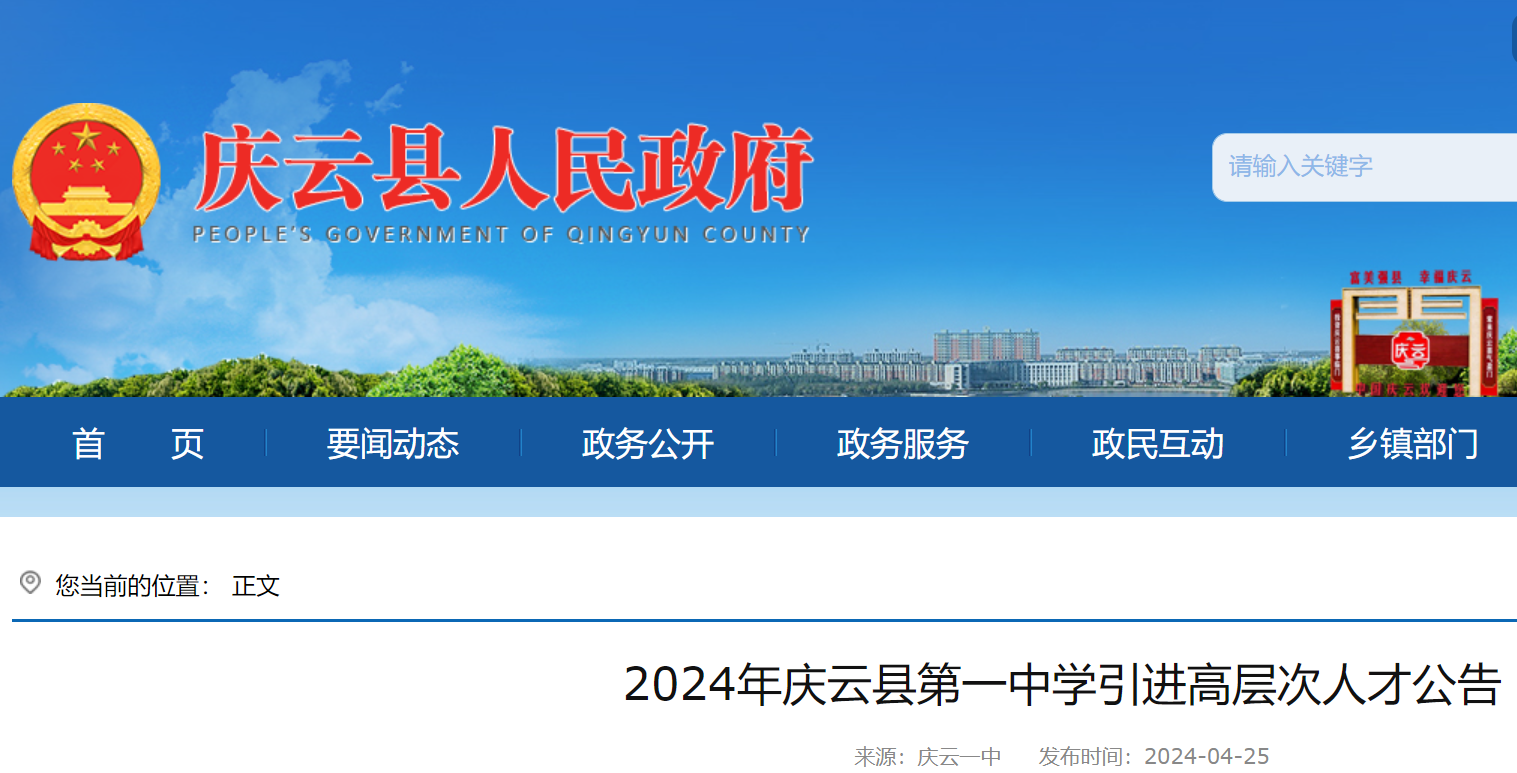 慶云縣第一中學(xué)引進(jìn)高層次人才相關(guān)信息在慶云縣人民政府門戶網(wǎng)站(www.qingyun.gov.cn)和慶云縣第一中學(xué)微信公眾號(hào)發(fā)布。