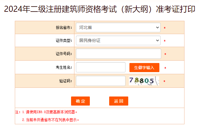 點(diǎn)擊進(jìn)入:2024年北京二級注冊建筑師準(zhǔn)考證打印入口