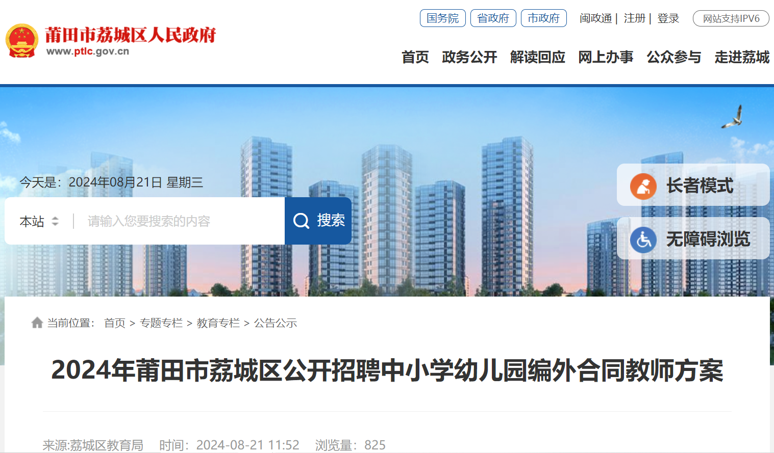 2024年福建莆田市荔城區(qū)公開招聘中小學(xué)幼兒園編外合同教師公告已發(fā)布,報(bào)名時(shí)間:2024年8月23日,上午:8:30-11:30,下午:3:30-17:30?,F(xiàn)將招聘公告原文發(fā)布如下: