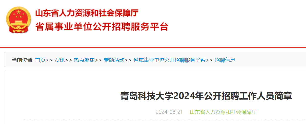 2024年青島科技大學(xué)公開(kāi)招聘工作人員簡(jiǎn)章已發(fā)布,報(bào)名時(shí)間:2024年8月22日9:00—8月30日17:00?,F(xiàn)將招聘公告原文發(fā)布如下: