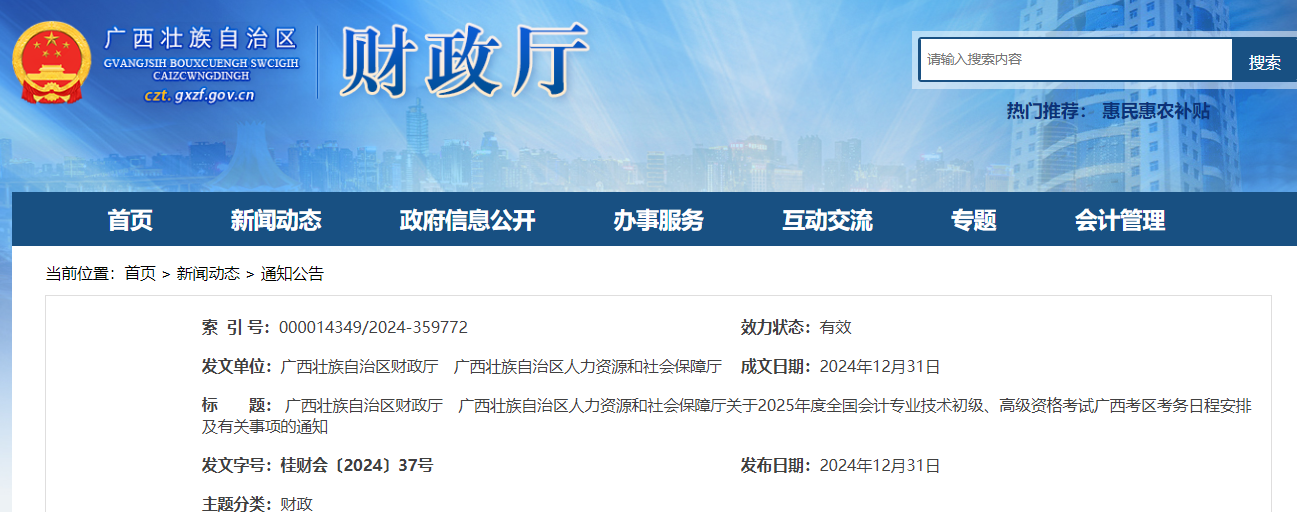 2.2025年4月16日前,廣西壯族自治區(qū)財政廳網(wǎng)站公布初級、高級會計資格考試打印準考證的網(wǎng)絡鏈接、起止時間等有關(guān)事項。